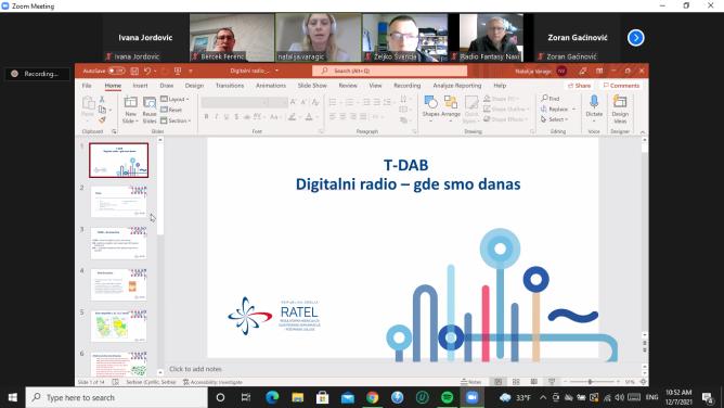 Natalija Varagić nam je prezentovala kako su podelje regije u sklopu DAB+ pokrivanja i takođe naglasila da se za komercijalnu upotrebu DAB+ čeka usvajanje novog Zakona.